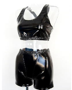 ブラックエナメルの本格ハーフトップ&ブルマー セットです。